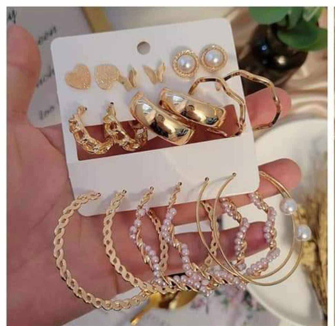 9 Pairs Big Hoop Pearl Dainty Butterfly Stud Earring Set - Image 1