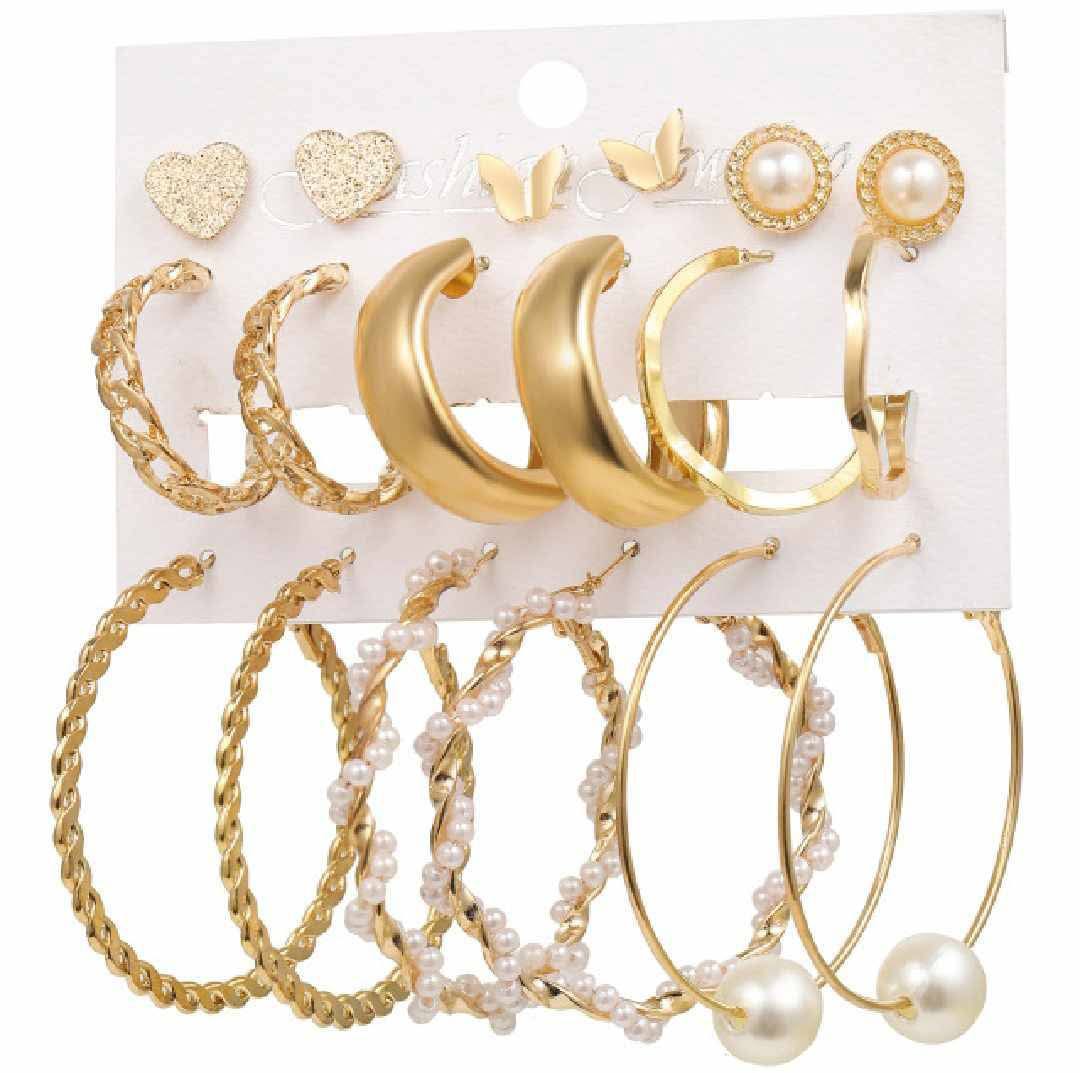 9 Pairs Big Hoop Pearl Dainty Butterfly Stud Earring Set