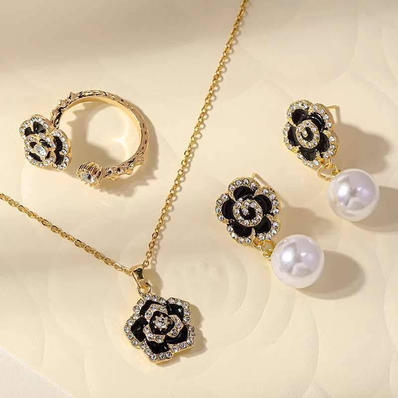 Home JEWELRY Black Rose Pendant Set