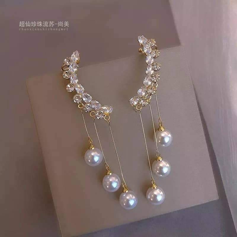 Home JEWELRY Long tassel Pearl stone Earrings