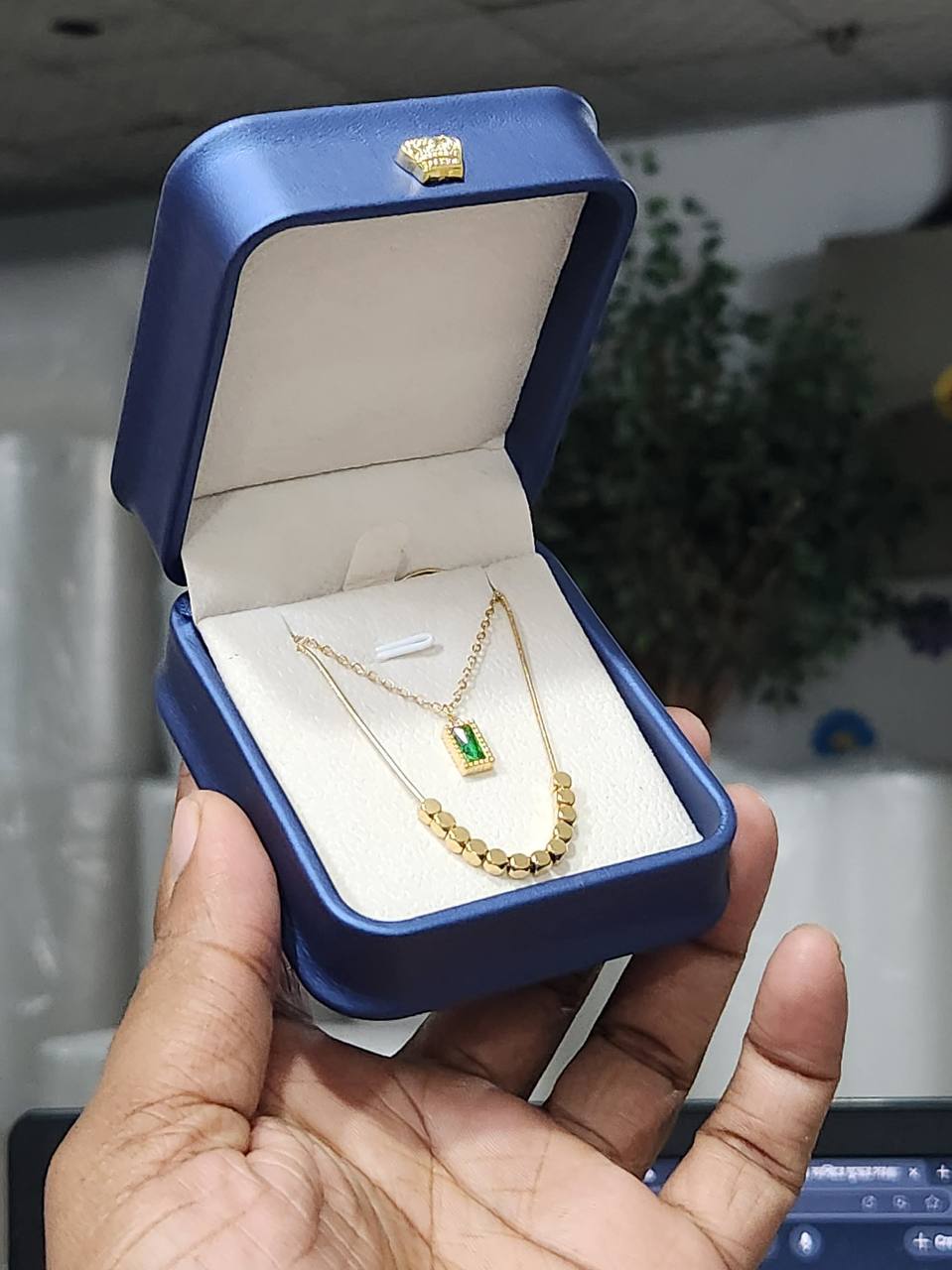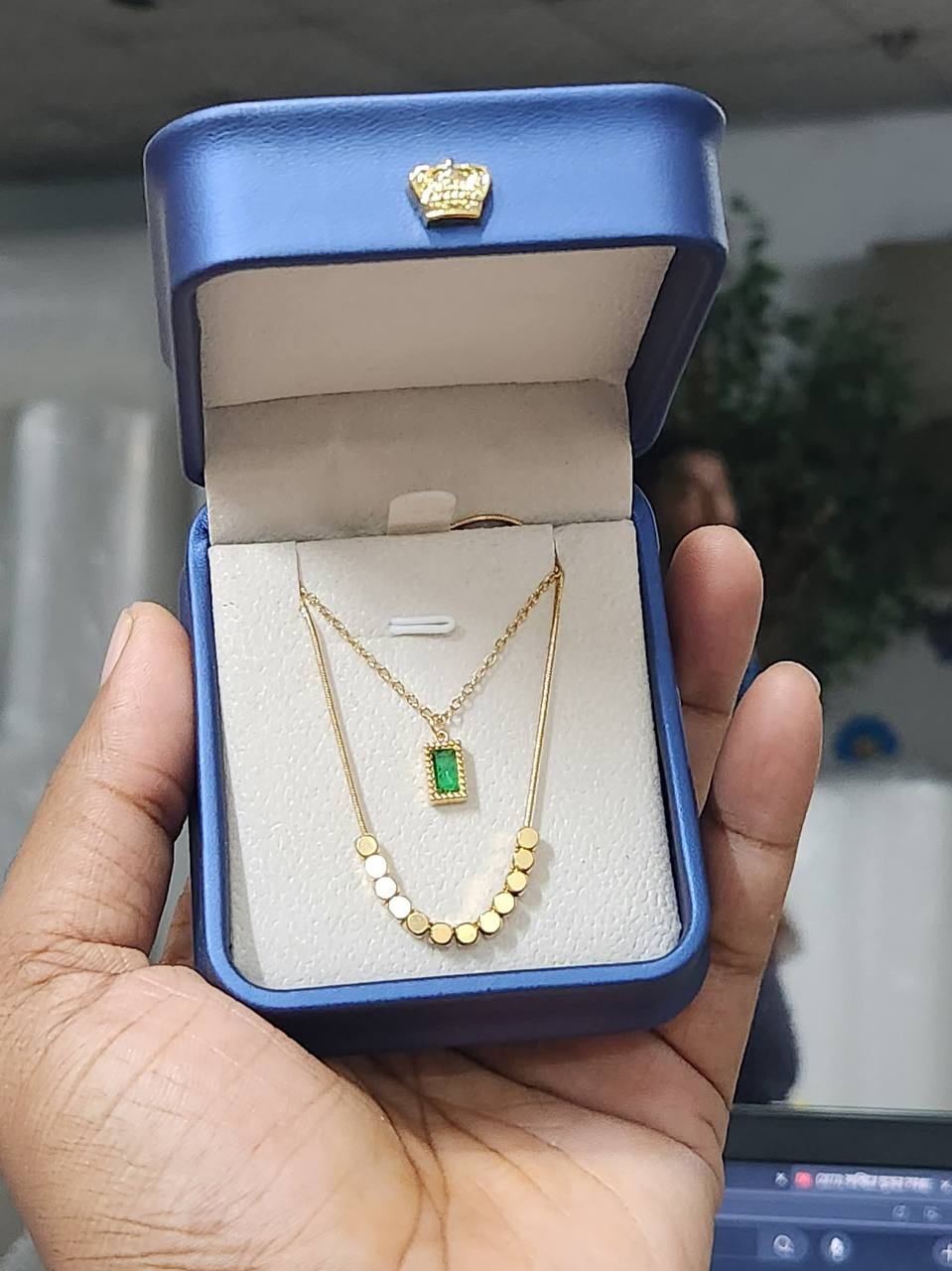 Square Double layer green stone necklace - Image 4