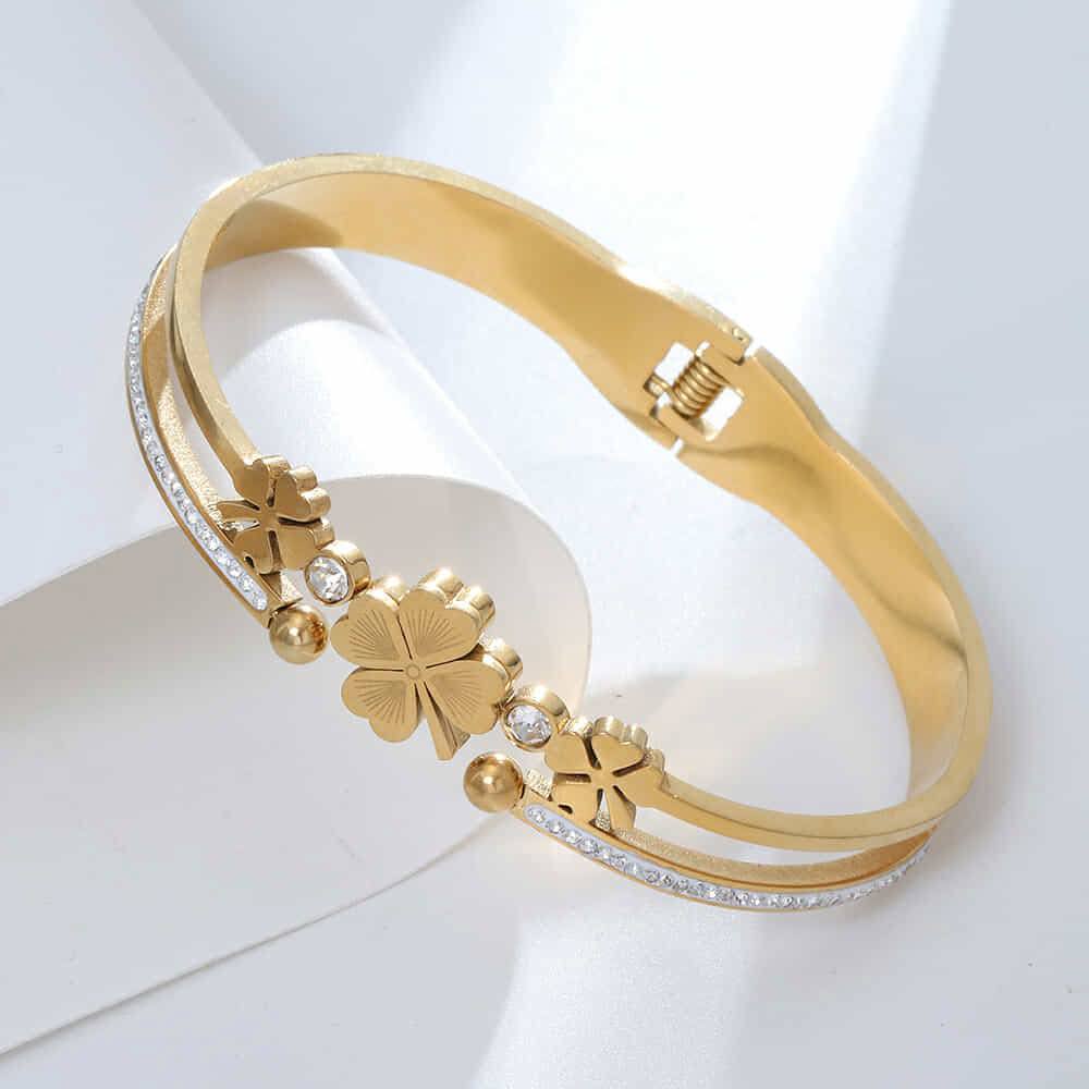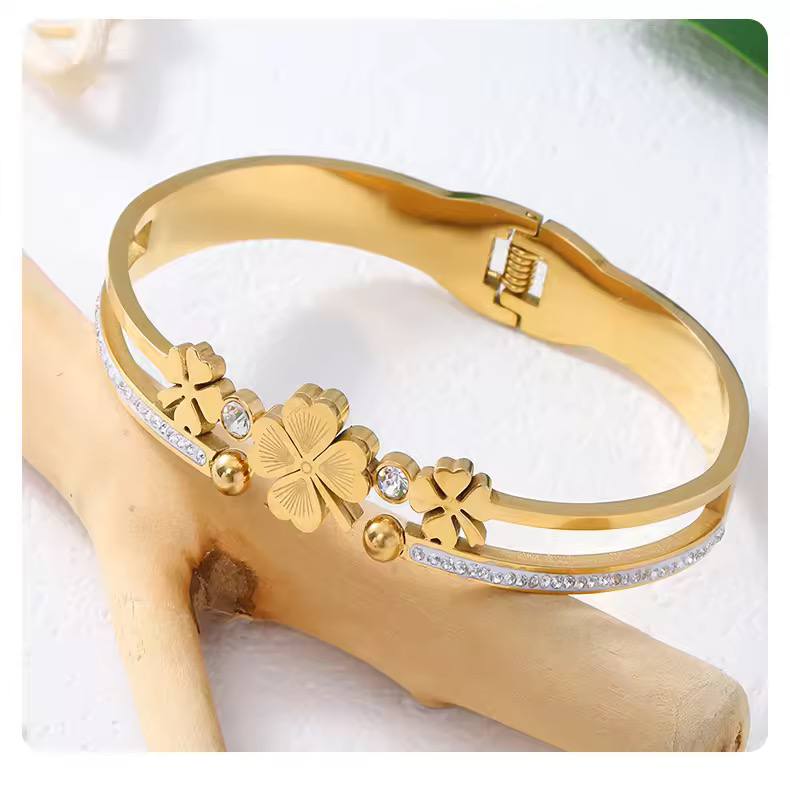 Home JEWELRY Stainless Steel Four-leaf Clover Cuff Bracelet