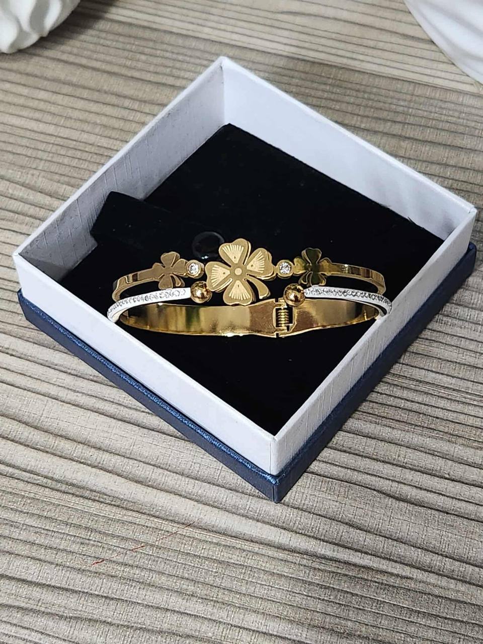 Stainless Steel Four-leaf Clover Cuff Bracelet - Image 1